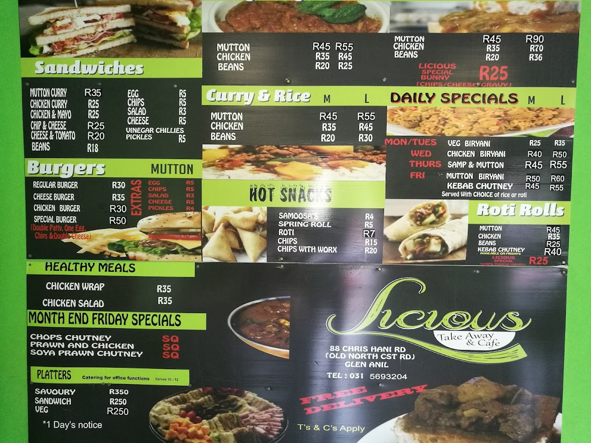 If you find yourself in Glen Anil, don’t miss the opportunity to visit Licious Cafe And Take Away. Whether you’re a local or a traveler looking to experience the authentic taste of Durban, this cafe promises a delightful culinary adventure that combines affordability with exceptional quality.